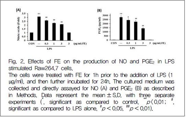 동의생리병리학회지에 게재된 <대두, 홍삼, 진피로 구성된 발효 추출물의 항염증 효능에 관한 연구>논문을 참고하면 염증을 유발한 세포에 발효홍삼을 처리한 결과, 아무것도 처리하지 않은 세포에 비해 염증 유발 물질인 NO의 활성이 2.08배나 낮았습니다.